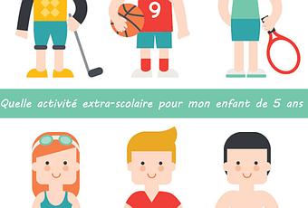 Les sports que l'on peut proposer à l'âge de 5 ansAprès je vous parle en fonction de mon fils, chaque enfant est différent, chaque club aussi, c'est pourquoi il est important de demander avant toute inscription de faire un essai d'une ou plusieurs fois pour être sûrs de leur choix, on ne peut pas se permettre de payer x abonnement pour faire des activités.