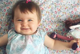 Elle est très axée sur la motricité, tout l'inverse de son frère. Elle tient presque assise et réclame souvent cette position. Elle ne supporte pas être allongée sur le dos. Assise, elle tend les mains pour attraper les nôtres et tente de se redresser, de se mettre debout.