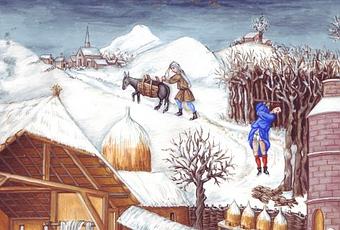 Paul, Jean et Herman de Limbourg – Février – Très riches heures du duc de Berry 1410