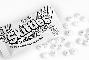 Une campagne que j'avais loupé : les bonbons Skittles avait fait une opération assez maligne au moment de la Pride londonienne, en juin dernier, en virant les couleurs des packagings et des bonbons pour ne pas concurrencer l'arc en ciel du drapeau LGBT.