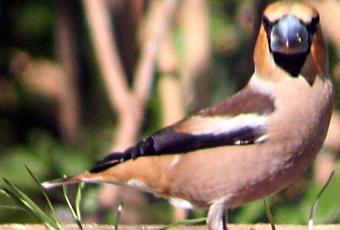 Il mérite bien son nom car son bec est massif, presque aussi large que la tête qui est pourtant très large à cause des muscles puissants qui accompagnent ce bec. Imaginez-vous casser avec les dents des noyaux de cerise (mais ne le faites pas par pitié pour vos dents).