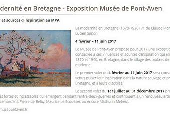 Après trois ans de travaux le Musée de Pont Aven a rouvert ses portes en mars 2016. Il propose cette année une exposition en deux volets, consacrée à ces influences et sources d’inspiration qui émergent entre 1870 et 1940, en Bretagne, dans le sillage des maîtres de la peinture moderne