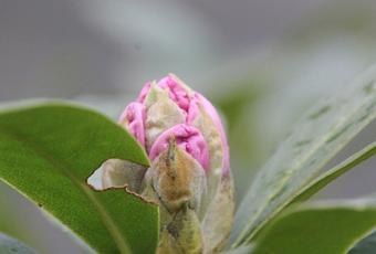 Le Rhododendron x ‘Cunningham’s White commence à fleurir.