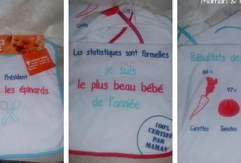 On y trouve un lot de 3 bavoirs sur le thème de l'humour de bébé, avec moi président j'interdis les épinards ou encore on se moque des statistiques, puis les bavoirs on a jamais assez, donc ça tombe bien je vais les offrir à ma petite sœur pour mon neveu ( et oui cela va aller dans la box que je leur réserve, qui se remplit doucement, mais sûrement).