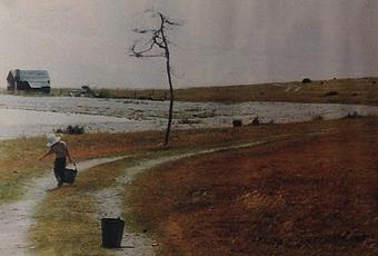 On le retrouve dans une autre scène de rêve, le formidable rêve du puits, où on le retrouve avec la mère. Avec encore une fois, une chute brutale, à tous les sens du mot, celle du seau tout d'abord, en contre-plongée vertigineuse, puis celle de la mère, gisant au sol, arrosée par une gerbe d'eau. Et le seau en premier plan.