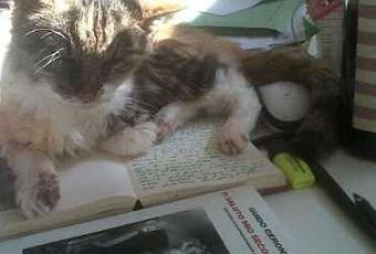Or c’est à l’état de leur chienne Thea et de leurs sept chats que nous aurons mesuré le mieux les effets du temps écoulé depuis nos dernières fois, mais l’amitié vraie est une braise vite ravivée dans la cendre du temps.Et voici donc Bella qui va vers sa vingtième année, autant dire qu'elle vire centenaire, ainsi nommée naguère par exorcisme conjuratoire tant elle incarnait la Miss Mocheté quand notre amie l’a recueillie toute cassée et cabossée, d’abord rejetée par la smala de ses congénère mais se cramponnant et se remplumant aux bons soins de nos infirmiers bénévoles - Bella qui honora quelque temps son nom et que voici réduite à l’état mouillé dépenaillé de chouette tricolore claudiquant sur place, roucoulant du moins et s’attardant longtemps sur mes carnets ouverts, comme pour se persuader d’exister encore... °°°Ce qui fait qu’on appelle ces gens-là nos amis tient à des riens : disons qu’on se trouve bien en leur compagnie, sans rien à se prouver moins que jamais, parce que c’était nous et que c’était eux, disons qu’on se comprend à demi-mot, mettons que nous partageons pas mal de goûts et pas mal d’idées aussi mais pas toutes, avec des rites amicaux établis entre café du matin à renfort de dolci et marchés populaires de l’après-midi, flâneries et causeries; et le soir le Gentiluomo ne manquera pas de répéter « povero paese ! » aux dernières nouvelles de la télé abhorrée, à quoi nous rétorquerons non moins rituellement « caro paese » en savourant les produits de pays de la Fattoria Marinella, “maraviglioso paese” en voyant tourbillonner les gangs d'étourneaux sur les feuillées - poveri uccellini dans le ciel à la Tiepolo de l’arrière-printemps marin, cari uccellacci !