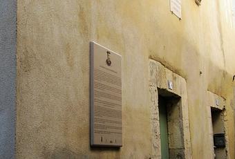 une plaque de marbre avec la date de naissance de Nostradamus.