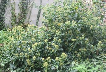 Les fleurs sont joliment hérissées d’étamines mais les abeilles ne s’intéressent pas au pollen du lierre,