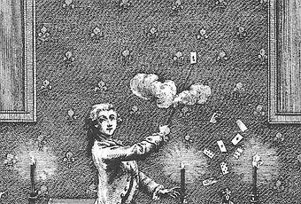 Au XVIIIe siècle, un illusionniste comme Giussepe Pinetti ( 1750-1803) n'était pas encore considéré comme un artiste respecté... Le magicien lui-même jouait sur l’ambiguïté de ses dons. Ainsi Pinetti se présentait-il comme un homme de science. Il a commencé sa carrière comme professeur de physique ( ou de ''philosophie naturelle'') à Rome dans les années 1770, ses cours étaient agrémentés d’expériences, des ''illusions'' qu'il faisait passer pour des démonstrations scientifiques...