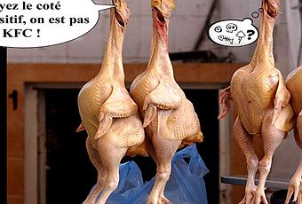 Aujourd'hui nous allons parler poulet ; Non pas celui qui par accident comme à Nantes tira sur un ado - surnommé parfois " jeune poulet monté en grain ", non pas ce " mon poulet d'amour " que prononcerait madame en fin de coït orgasmique, qui d'ailleurs ferait suite à l'envoi d'un " poulet " ou message amoureux, non, non ! Mais bien du poulet Gallus gallus domesticus qui était servit jadis chaque dimanche midi aux temps où ces braves petites bestioles picoraient dans des basses-cours fleuries, et non pas comme aujourd'hui, dans des culs de basses-fosses pourris.