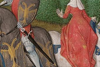 Gauvain suit l'armée et arrive à Belleroche ; il n'a d'abord nul dessein de prendre part au combat qui se prépare. Il va camper sous les murs du château ; d'en haut les dames de contemplent. Méprisante, la fille aînée de Lyppaut, Obie, déclare que cet étranger n'est qu'un marchand ; la jeune sœur, Obilôte, au contraire, vante l'air noble du nouveau venu et se déclare prête à lui accorder son amour.