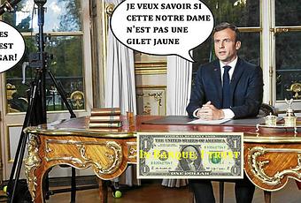aurait dit selon certaines sources de BFM : " détruisez ce sanctuaire, et en trois jours je le relèverai Macron n'étant que Jupiter ca lui prendra 5 ans...Niveau rendement ya pas photo mon gars, t'es un tâcheron ! Etant plus balèze en bagout qu'avec la truelle en main, à la TV Macron a enjoint les Français à ne pas se montrer trop impatients " Après le temps de l'épreuve, viendra celui de la réflexion puis celui de l'action. Mais ne les mélangeons pas, ne nous laissons pas prendre au piège de la hâte " Quel art de ne rien dire et ne rien faire... Moi qui pensais qu'à peine terminé son blabla, il allait retrousser les manches et commencer à déblayer les gravas... Il a fallu bien sûr qu'il balance une vacherie durant son allo cul scions ; ce mec à un esprit d'un mesquin, avec toujours sa petite phrase qui blesse, sa petite pique style gonzesse frustrée. Sa marotte c'est les gilets jaunes, et il ne s'en est pas privé le gnome : " Ce que nous avons vu, cette nuit, ensemble, à Paris, c'est cette capacité de nous mobiliser, nous unir, pour vaincre ", a-t-il déclaré, exprimant comme une forme de regret que cette union se fissure chaque samedi depuis le 17 novembre... Le genre de petit mec qui la ramène toujours et qu'il faut pour qu'il ferme son clapet à tites saloperies, une bonne baffe sur le coin du groin ! Je sais, ce n'est pas très généreux de la part d'un mauvais catholique comme moi, j'irai me con-fesser promis ! Mais ya des moments où : baffer ou se méconduire, il faut choisir !