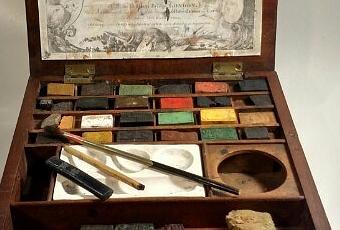 C’est un article publié dans le Figaro paru en août 2018 sur la Boite magique de William Reeves qui a attiré mon attention. William Reeves 1739-1803 est un marchand londonien de fournitures pour artistes . En 1766 (mais les dates divergent selon les sources) il propose une boite de tablettes d’aquarelle de l’invention qu’avec son frère Thomas, il a mise au point.. J’observe que le tube souple de peinture à l’huile est inventé en 1841 par l’artiste américain John Goffe Rand.