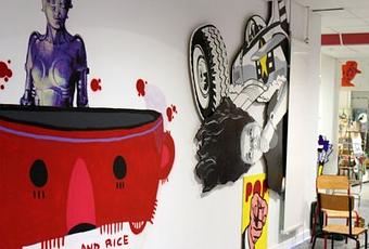 Réalisation en cours dans le collège Charles de Gaulle à Plœmeur avec des élèves et Jean le professeur d’arts plastiques.