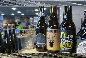 ornés d'un X coloré affichant le nom de chaque bière contre un blanc