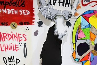 Tarek + Mat Elbé | Réalisation de pochoirs et graffs dans le collège Charles de Gaulle à Ploemeur avec des élèves. Des images du couloir…