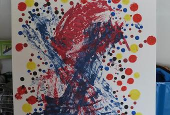 Des marques des cerclesdes griffures, un tourbilloncouleursqui giclent sur la papier des mouvements furieuxun tressautement trépidantAbtract!