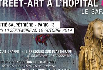 Street art à l’hôpital #2, le Safari à la Pitié Salpétriêre (Paris 13e) : 1 circuit graffiti, 11 fresques sur Plastigraff et 13 graffeurs et fresquistes. Parcours d’exposition de 70 oeuvres réunies sur 7 Espaces de l’hôpital : Peintures, Sculptures & Installations, programmés pour la Nuit Blanche du 5 Octobre 2019 par la Mairie du 13e.