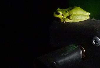 Une rainette sur une poignée de porte et sur l’île d’Oléron en septembre 2019 – Photo réalisée sans flash