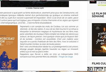 "Et sur le site Avoir à lire, rendant compte du livre d'Azoury [entretiens avec Adolpho Arrietta], n'est-il pas étrange de voir, en contrepoint à Flammes et à la couverture d' Un morceau de ton rêve..., l'affiche du nouveau film de Cécile Sciamma, Portrait de la jeune fille en feu, où Adèle Haenel semble, comme le Phénix, s'élever au-dessus d'un nid de flammes ?"