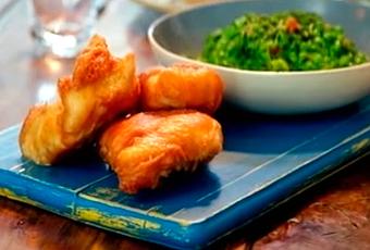 - Mettez votre poisson dans la pâte et placez-le dans l'huile bouillante. Cuire le poisson de 3 à 5 minutes. Une pâte est belle et croustillante, elle est prête. Laissez le poisson sur l’essuie-tout pour éponger le surplus d’huile.