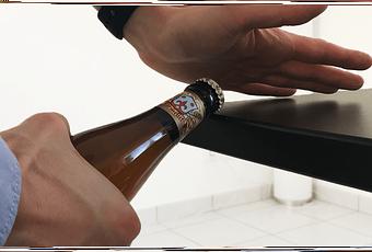 Je me rappelle très bien quand mon cousin m'a montré cette technique ! Le bord d'une table ou celui d'un comptoir de bar, est un moyen assez efficace, pour décapsuler sa bière.