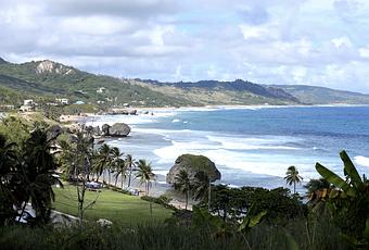 La côte est de la Barbade et sa célèbre droite, Soup Bowl en arrière-plan.