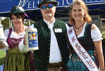 Les membres du American German Club Jennifer McDaniel, Jay Vollstedt et Mme Winefest 2019 Christina Vollstedt.