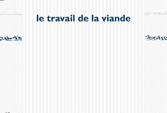 H appée par la flagrante trivialité du titre - Le Travail de la viande -, j'ai d'abord imaginé une tripotée de bouchers de Rungis, tabliers blancs maculés de traînées de sang, s'activant à décharger des carcasses sanguinolentes. Me sont simultanément revenues en mémoire les célèbres toiles de Rembrandt et de Chaïm Soutine. Bœuf écorché, écartelé et souffrant, offert aux regards obscènes du spectateur. Je peux tout autant imaginer le travail au scalpel du chirurgien anatomiste taillant dans les chairs à vif d'un corps à nu. Mais pourquoi les images qui s'imposent aussi durablement à moi sont-elles celles des portraits torturés de Bacon ? Ces couleurs violacées et blanchâtres de visages aux chairs révulsées ? Je continue de m'interroger.