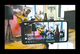 NOUVELLES PHOTO DE SEAN ROONEY - Daniel Hooft et Logan Straub de Blurryisenough se produisent devant une foule virtuelle au Travois Ale Works mardi soir.