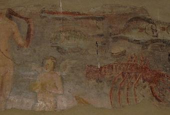 Premier voyage à Rome (mais pas le dernier). Ce 21 avril-là est l’avant-dernier jour des vacances et nous quittons Rome pour visiter les vestiges du port antique d’Ostie. J’avoue ne plus bien avoir le site en tête, et replonger dans les vieilles photos a quelque chose d’assez stimulant. Je m’arrête donc aujourd’hui sur la partie droite d’une fresque, sans bien me souvenir si j’ai réalisé cette photo pour les corps dénudés ou pour le magnifique crustacé …