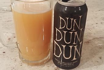 DUN DUN DUN est un double IPA (7,5% ABV) qui verse une couleur de jus d'orange pâle extrêmement trouble. Il a juste une fine couche de tête mais il colle et laisse un joli laçage. L'arôme est tout de notes tropicales et de pin et le goût est tout simplement délicieux. Wow, c'est une excellente bière. Il y a beaucoup de fruits dans ce domaine, notamment l'orange, les agrumes et la pêche. Il se poursuit avec juste assez d'amertume combinée avec des notes florales et se termine ensuite sur le chemin du retour avec une douceur que je ne peux pas vraiment mettre le doigt, mais qui est définitivement là.