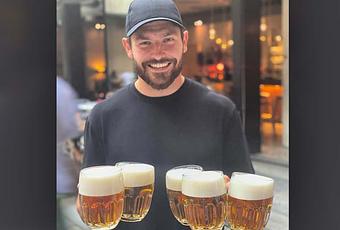 C'est Kempny qui tient cinq pichets de bière. "Bière quelqu'un?" il demande.
