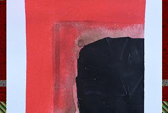 Nouveau travail sur le rapport de couleur, de matière et de transparence: red is the new black! un travil en série sur trois cartes de format 20x20 cm sur papier Fabriano. Abstraction sur le noir matière et le rouge couleur.