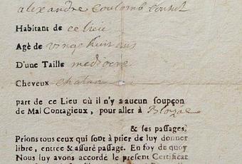 Une attestation de déplacement en 1720 contre l'épidémie de la peste.