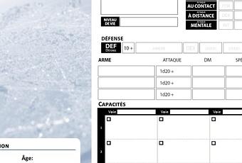 Cette fiche à télécharger ci-dessous est idéale pour créer des personnages prétirés, elle ne fait qu'une page, et contient le minimum pour partir à l'aventure !