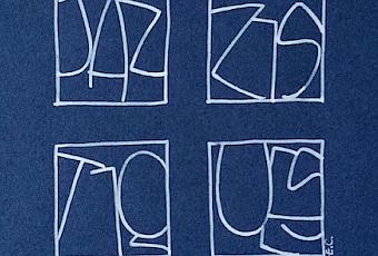 Je me suis amusée dans une petite série de lettres cadrées. J'ai utilisé de la gouache sur du papier Ingres bleu et du Pergamon de Fabriano.
