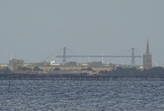 Je ne m’en lasse pas, au risque de radoter, mais qu’importe : dès que je déambule sur le port du Château d’Oléron, je cherche au loin le pont transbordeur de Rochefort. C’est facile, il est juste derrière le clocher de Moëze qui sert d’amer. Un classique, en somme. Et hier, comme souvent, il était bien net.