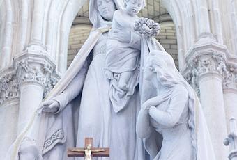 | Notre Dame Libératrice, prends en pitié tous nos frères défunts, spécialement ceux qui ont le plus besoin de la miséricorde du Seigneur. Intercède pour tous ceux qui nous ont quittés, afin que s’achève en eux l’œuvre de l’amour qui purifie. Que notre prière, unie à celle de toute l’Église, leur obtienne la joie qui surpasse tout désir et apporte ici-bas consolation et réconfort à nos frères éprouvés ou désemparés. Mère de l’Église, aide-nous, pèlerins de la Terre, à mieux vivre chaque jour notre passage vers la Résurrection. Guéris-nous de toute blessure du cœur et de l’âme. Fais de nous des témoins de l’Invisible, déjà tendus vers les biens que l’œil ne peut voir. Des apôtres de l’espérance, semblables aux veilleurs de l’aube. Refuge des pécheurs et Reine de tous les saints, rassemble-nous tous un jour, pour la Pâque éternelle, dans la communion du Père, avec Jésus le Fils, dans l’Esprit Saint, pour les siècles des siècles. Amen. Notre Dame de Montligeon, priez pour les âmes du purgatoire. |