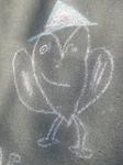 Ce petit bonhomme, croisé sur le coin d’un trottoir, me sourit. Je pense aux petites mains qui ont tracé ses traits et je cherche en ma tête d’adulte, pourquoi, malgré le fait qu’il n’ait pas de bras et de très grosses oreilles, il me plait et m’attire. Mon esprit cherche trop loin un sens caché qui n’existe pas car soudain : bingo, la lumière se fait dans ma petite tête !