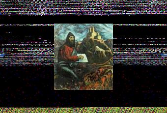 Illustration: Grégoire de Narek rédigeant son fameux 'livre des lamentations' tableau d'Advast Berberian vers 1960 - Musée Melik