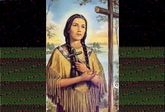 Kateri est la première sainte indienne du continent nord-américain. Elle est née d'une mère algonquine chrétienne et d'un père agnier (Les Algonquins, les Agniers - ou Iroquois - et les Hurons étaient des tribus des Indiens d'Amérique du Nord) en 1656 à Ossernenon (Auriesville, New York), où les saints Isaac Jogues, René Goupil et Jean de la Lande avaient versé leur sang pour la foi. Fille de chef, elle refusa d'être mariée et convertit celui qu'elle devait épouser.