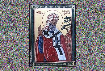 Illustration: Icône - Saint Sylvain évêque de Gaza en Palestine - Alain - site internet: iconesalain.free.fr.