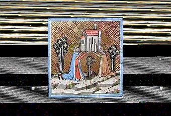 Illustration: miniature - Gisèle et son époux Étienne Ier de Hongrie et l'église Saint Pierre Saint Paul.