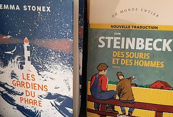 A ma gauche, la nouvelle traduction de Of Mice and Men, de John Steinbeck, par Agnès Desarthe. Je l'ai dit, a priori rien à voir.