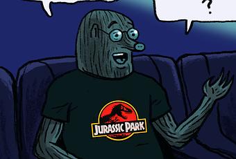Le dessin s’en moque, mais ce retour est sans doute ce qu’il y a de mieux (ou de moins mauvais) dans ce film bancal, qui ressemble plus à un Indiana Jones ou un James Bond, qu’à Jurassic Park.
