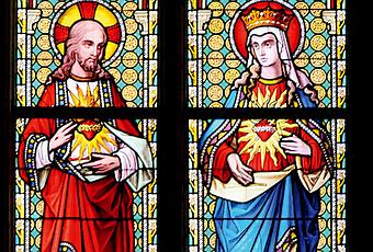 Lorsque j'étais enfant, ma famille priait le chapelet quotidiennement. En juin, le mois du Sacré-Cœur de Jésus, nous priions le « chapelet du Sacré-Cœur ». Cette version remplace le Notre Père par « Jésus, doux et humble de Cœur, rendez nos cœurs semblables au vôtre » et l'Ave Maria par « Doux Cœur de Jésus, soyez mon amour ». Alors que nous terminions d'habitude le Rosaire marial par les litanies de Lorette, en juin, nous récitions les litanie du Sacré-Cœur. La dévotion au Sacré-Cœur et la prière de l'Apostolat ont été inculquées à mon père par ses professeurs Jésuites en Inde. Chaque matin, avant d'aller à l'école, mes parents nous faisaient réciter l'Offrande du matin, qui comprend les mots suivants : « Ô Jésus, par le Cœur Immaculé de Marie, je vous offre mes prières, mes travaux, mes joies et mes souffrances de ce jour, à toutes les intentions de votre Sacré-Cœur... » Ils avaient placé une image du Sacré-Cœur près de mon lit, et plus tard, cette image m'a suivi dans tous mes déménagements. |