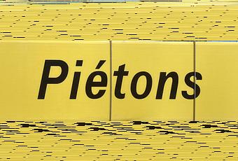 Vous êtes chargé d’assurer la sécurité des piétons près d’une zone de chantier. Votre mission consiste à réaliser des panneaux indiquant le chemin à suivre pour que lesdits piétons ne se prennent pas les pieds dans le tractopelle. Vous disposez de panneaux jaunes, de feutres et de lettres-transfert, ainsi que d’un modèle :