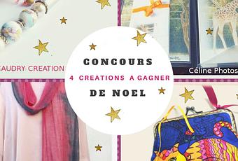 Nous sommes 4 créatrices ; Les soies de Sophie, Catsoo sacs, Céline Photo Art Nature, et Lacaudry Création, qui mettons en jeu 4 magnifiques créations pour un concours se deroulant sur FACEBOOK du 18 novembre au 17 décembre 2017