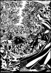 Tueur-de-dragonsJe dois reconnaître qu'en noir&blanc ça reste confus. Mais comme la plupart de mes illustrations, elle est faites pour qu'on la regarde, qu'on la scrute à s'user les yeux dessus, au moins autant que j'ai usé les miens à la dessiner...(n'oubliez pas de cliquer sur l'image afin de la voir en meilleur format !)